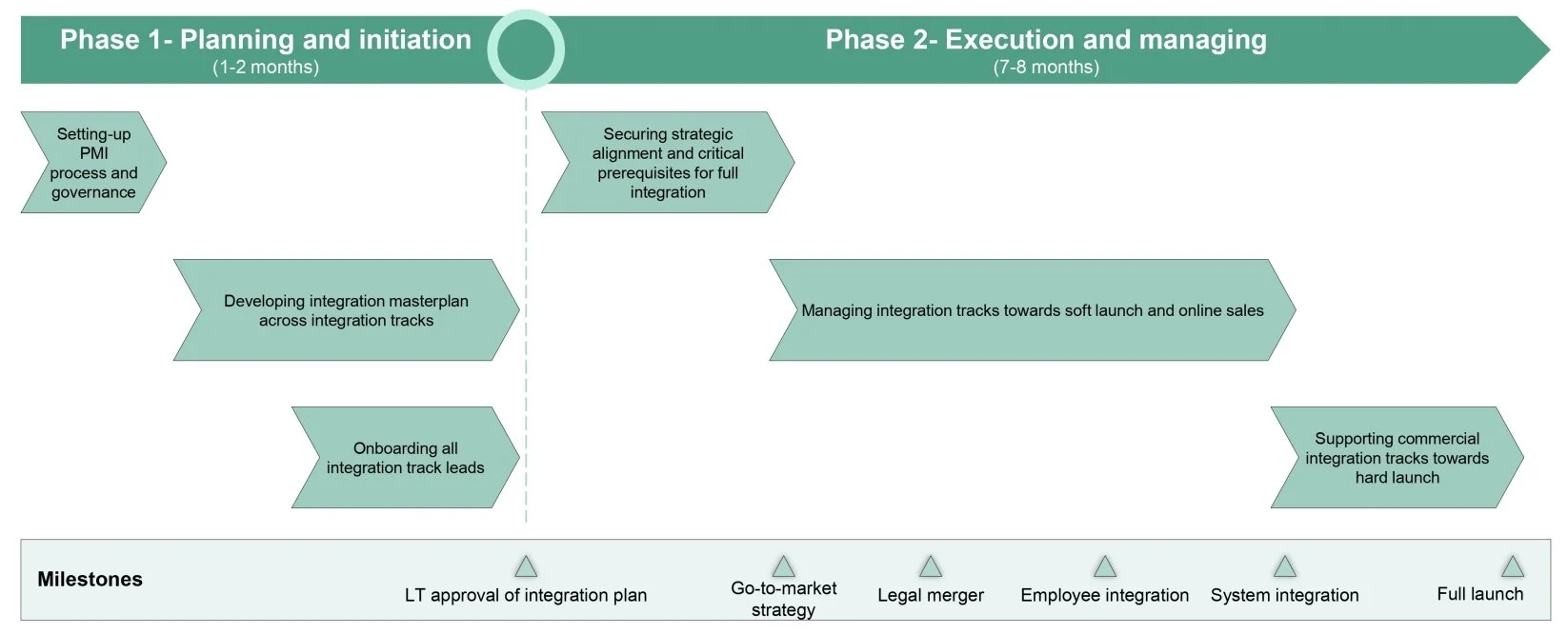 In phase 1 CoreConsult focused on establishing the post-merger integration process, creating an integrated masterplan, and onboarding key integration track leaders.
